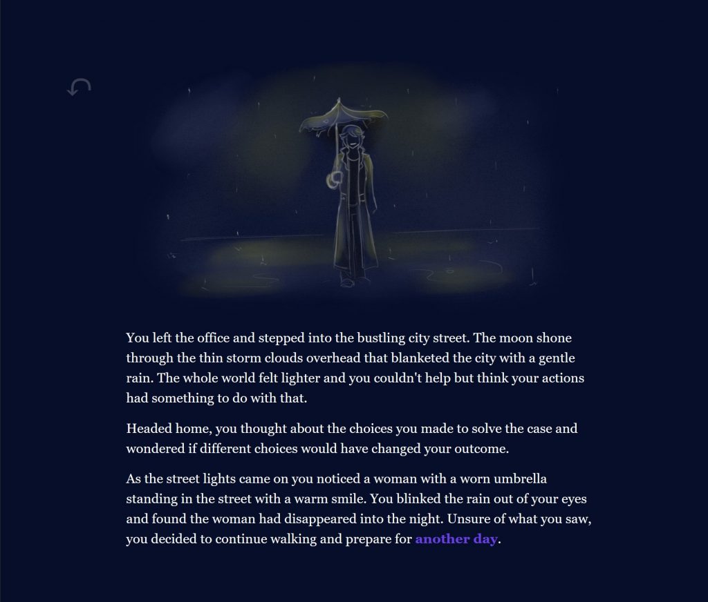 An interactive, hypertext narrative about a mysterious detective agency and a city eternally plagued by rain.