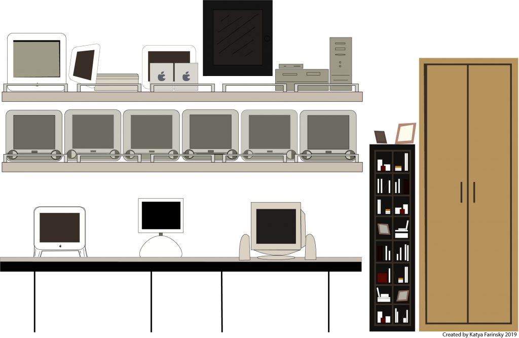 This is an original illustration of a portion of the Electronic Literature Lab at Washington State University Vancouver. To create this project, I took a reference photo of the back wall and created the graphic by combining rectangles and adding shading. This work is integrated with an infographic I designed for the Electronic Literature Lab (ELL) at WSU Vancouver about preserving electronic literature and was previously featured on the ELL website.