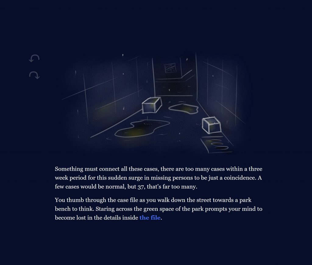 An interactive, hypertext narrative about a mysterious detective agency and a city eternally plagued by rain.